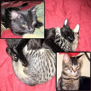 Quand la vieille chatte s'installe de peine et de misère sur le sofa, soit on prend les bébés à l'étage, ou on les laisse dans leur chambre. Ben oui, ils ont la chance d'avoir une chambre rien que pour eux, pour dormir et pour laisser de l'espace à la vieille. Quand la vieille s'installe dans le lit de la jeune fille, je ferme la porte et le party prend! Ce n'est certainement pas la situation rêvée, et c'est très loin de celle à laquelle je rêvais pour ma tribu féline, mais comme tout ce beau monde à l'air de s'y sentir à l'aise, je fais avec, même si l'idée d'en avoir toujours un ou deux enfermés quelque part n'est pas trop plaisante... Et puis comme je n'ai pas l'habitude d'avoir les portes fermées, c'est étrange...