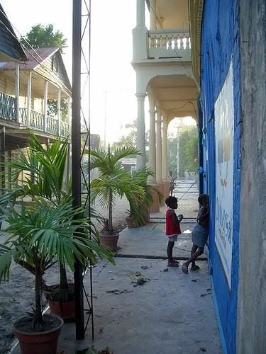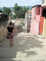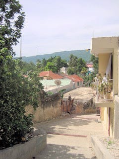 Nous descendons vers la mer par un chemin fait d'escaliers en gradin sans fin. L'architecture est intéressante, mélange de colonial français et de créativité haitienne colorée, fer tarabiscoté.
