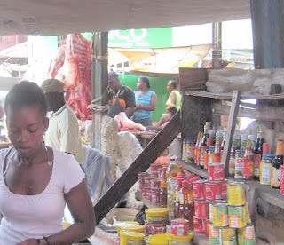 On laisse Gogo dans un café en bonne compagnie et nous partons à l'assaut du marché. À l'assaut, oui, parce que du monde, il y en a, même si c'est lundi et que c'est donc pire les week ends. Des étals de toutes sortes, des produits alimentaires, des souliers, des vêtements, des épices, et... la viande!! C'est toujours très instructif pour nous, habitués des supermarchés stérilisés (ou presque), de se retrouver nez-à-nez avec une énorme carcasse d'animal non-identifiable. Et l'odeur... Plus on s'approche, plus ça s'intensifie, odeur métallique de sang, de décomposition fugace, de fin de vie. Ça se tolère tout de même mieux que les émanations indescriptibles des piles de déchets qui jonchent, en quantité phénomale, l'arrière du marché et que des hommes, armés de pelles et de fourches, s'affairent à remuer, à déplacer. Je veux du café en grain, mais tout ce qu'on me propose est déjà moulu, tant pis!