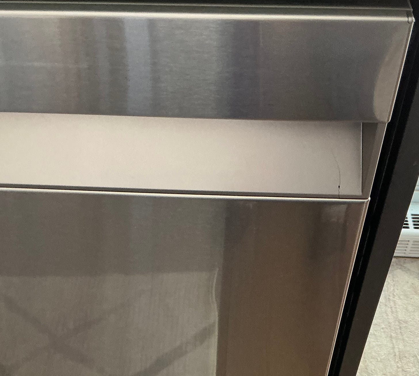 tout le haut de la porte de l’appareil remplacé, après deux mois d’usage, trois mois d’attente et une série de joutes verbales avec la compagnie, qui insistait pour qualifier le bris de négligence. Mauvais usage de la chose.