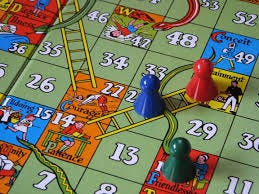 L’enfant s’agenouille près du plateau. Il aime ce moment précis. Avant. Quand tout tient encore. Il lisse le plateau du plat de la main. Le carton est tiède. Il connaît la suite. L’ordre des choses. La répétition des séquences. D’abord on lance le dé. Ensuite on avance. Ensuite on attend. Puis l’autre fait pareil. C’est simple. C’est fiable. On monte l’échelle, on glisse plus bas sur le serpent.