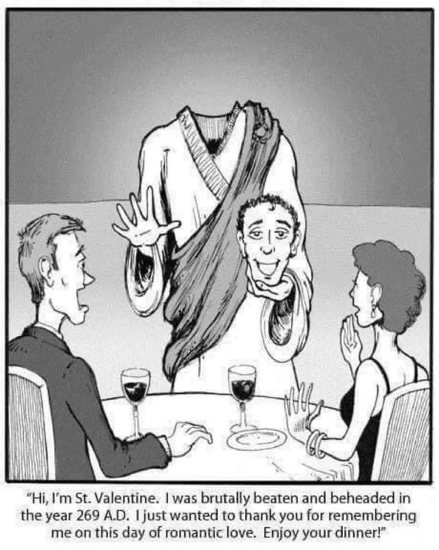 C’est aussi le mois de la Saint-Valentin. La fête de l’amour, paraît-il, basée sur un martyr recyclé en peluches roses, et utilisé chaque année pour vérifier qui tient à qui de la bonne manière… Oublie pas la douzaine de roses à moitié fanées pis la boîte de chocolats blanchis par l’âge si tu veux pas te coucher tout•e seul•e, ce soir-là!