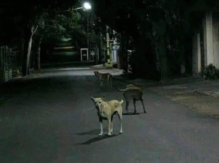 Un chien famélique apparut. Et puis un deuxième est sorti de la noirceur.