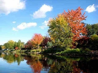 Les couleurs vives, l'air frisquet nous sont tombés dessus tout d'un coup, après cette longue semaine de canicule inattendue, début septembre. Je ne suis pas prête pour ça, pas envie... Quoique les couleurs, j'aime bien, surtout tôt le matin, soleil levant sur la rivière.
