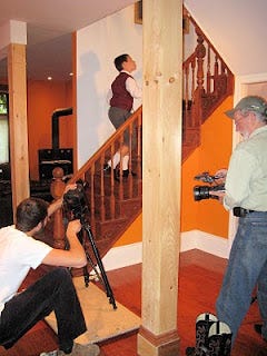 J'ai assisté récemment à la première journée de tournage du projet de FrogRadio sur Jean-Claude Labrecque. C'était très intéressant, surtout de réaliser le temps nécessaire pour tourner une scène de quelques minutes!! Je ne me pose plus de question sur les coûts exorbitants des grosses productions, ça devient une évidence!! Vous pouvez me lire plus longuement là-dessus sur le blogue de Frog...