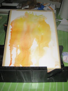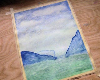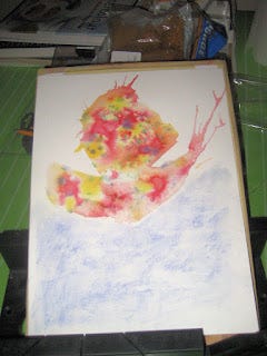 Alors, aquarelle, disais-je. C'est pas une mince affaire, même si on traduit ça par de la peinture à l'eau: L'équipement coûte la peau des fesses, trouver un prof à Montréal est une partie de cache-cache au cours de laquelle on perd souvent et une fois qu'on a gagné, c'est pour réaliser que cinq jours de cours, à raison d'un cours de deux heures par semaine coûtera aussi cher qu'un cours de trois mois à l'université! Enfin, l'investissement est fait et je compte bien être capable de décorer un petit mur de salle de bain dans six mois, ce qui fait bien cher le bout de papier pas encore encadré, mais coudonc, faut ce qui faut!