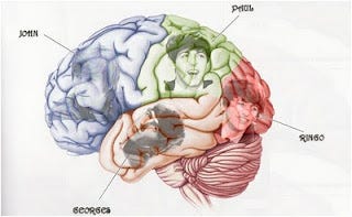 Faut que je vous jase de mon cours de biologie! Je suis tout simplement fascinée! Ce n'est pas une matière que j'ai beaucoup exploré, alors je suis comme un enfant dans un magasin de bonbons! Les neurones qui fabriquent les synapses, les circuits de communication entre les cellules, les découvertes et croyances d'autrefois... Tout est intéressant!! Mon seul problème, et c'en est un de taille, c'est que je n'arrive toujours pas à intégrer le vocabulaire!! Les quatre lobes du cerveau, j'ai beau lire et relire, même les écrire, ben je les appelle encore John, Paul, Georges et Ringo! Me semble que c'est plus beau que frontal, pariétal, temporal et occipital!!!! Ah!! Je les ai encore écrit, ça va peut-être finir par rentrer dans le mien de cerveau, et y rester!!