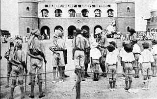 Quand je lis des trucs sur Lord Robert Stephenson Smyth Baden-Powell of Gilwell, je me dis qu'on est du monde ben bizarre pour avoir encouragé ce mouvement. Après tout, tournez-le dans le sens que vous voulez, Baden, c'est un gars qui a utilisé des enfants-soldats pour sauver ses fesses et celles des colons britanniques et hollandais installés en Afrique du Sud. Bon, on raconte que les petits gars, entre 9 et 12 ans, ne faisaient que passer des messages, mais ça demeure que c'est ce qu'on nous raconte! De plus, les missions trop dangereuses pour ces petits hommes blancs étaient refilées aux indigènes, des noirs, bien entendu!! Un ben bon gars, le père Powell!