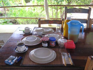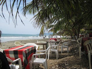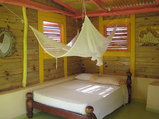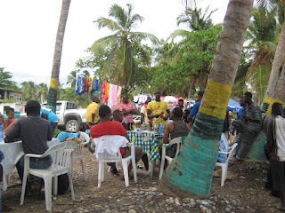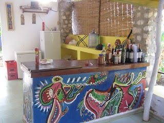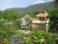 Le ciel est limpide, la chaleur réconfortante et Piano Piano m'apparait dans un éclaboussement de couleurs vives. Le jaune, le bleu, le rouge, les toits de chaume, les bananier, les anoles dans les cocotiers, le bar garni, tout y est. C'est tout simplement magique, un paradis caché au milieu de la misère ambiante, au milieu de rien ou de pas grand chose à mes yeux nord-américains. Et le sentiment d'apaisement qui s'installe, celui d'être finalement arrivé là où on le voulait, chasse la fatigue accumulée depuis la veille. Je me sens bien.