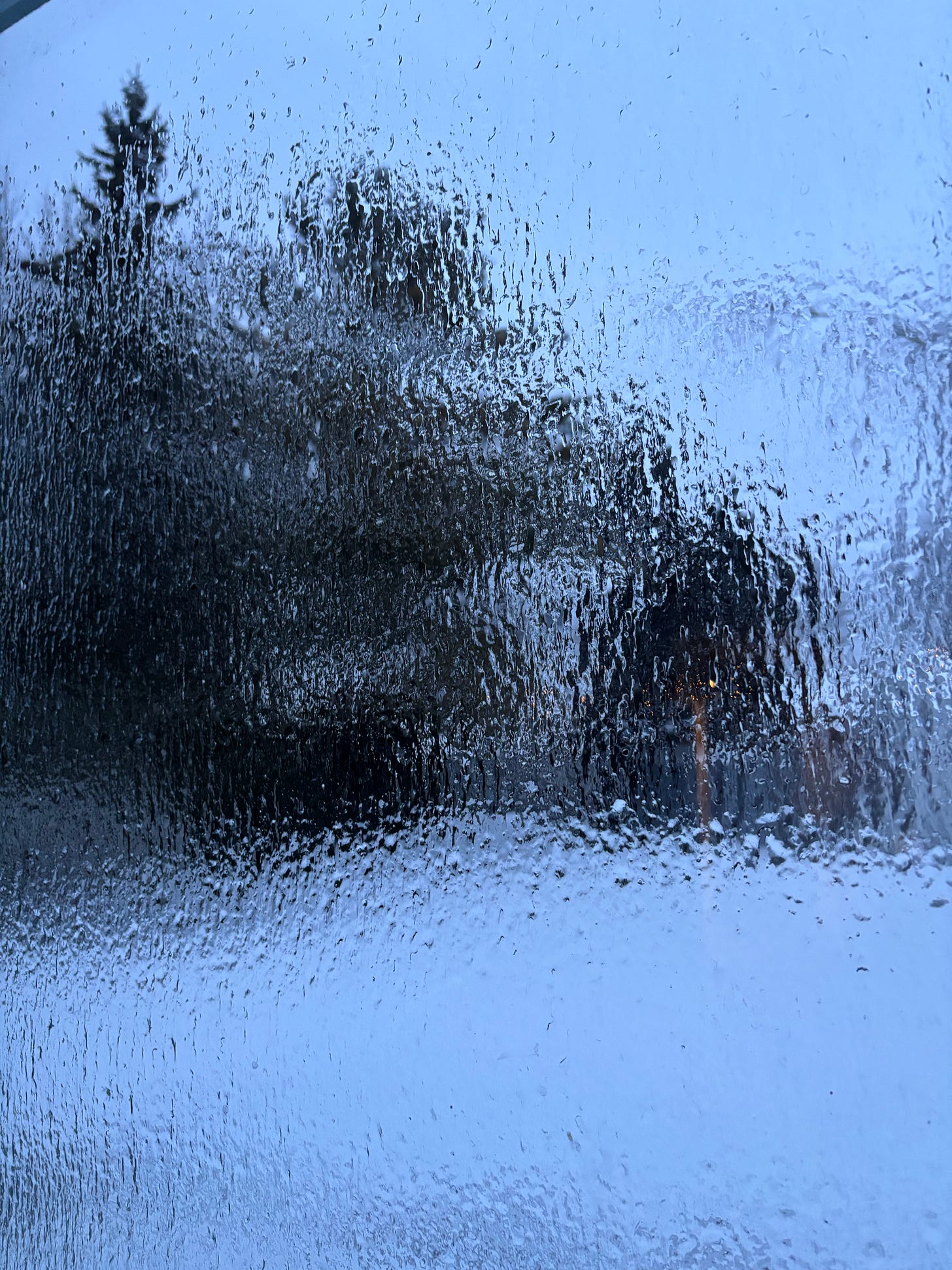 Au matin, la fenêtre ne donne plus sur le jardin. Elle donne sur une surface épaisse, texturée, scintillante, presque vivante. Le dehors est là, oui, mais rendu flou, brouillé, recouvert d’un filtre définitif. Comme si quelqu’un avait décidé que ça suffisait, le réel, et m’avait reléguée aux marges, loin de tout.