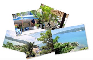 Qu'en dire?? La vue est admirable. L'hôtel, qui n'a l'air de rien, coté rue, est en fait un petit bijou serti dans une baie de verdure et de mer. Les falaises de craie (du moins ça en l'air) qui forment cet écrin, me font penser à Beachy Head, Angleterre, en miniature (je sais, ça juste pas d'allure, mais on a les références qu'on peut!) pis en plus, elles sont même pas sur les photos!!!