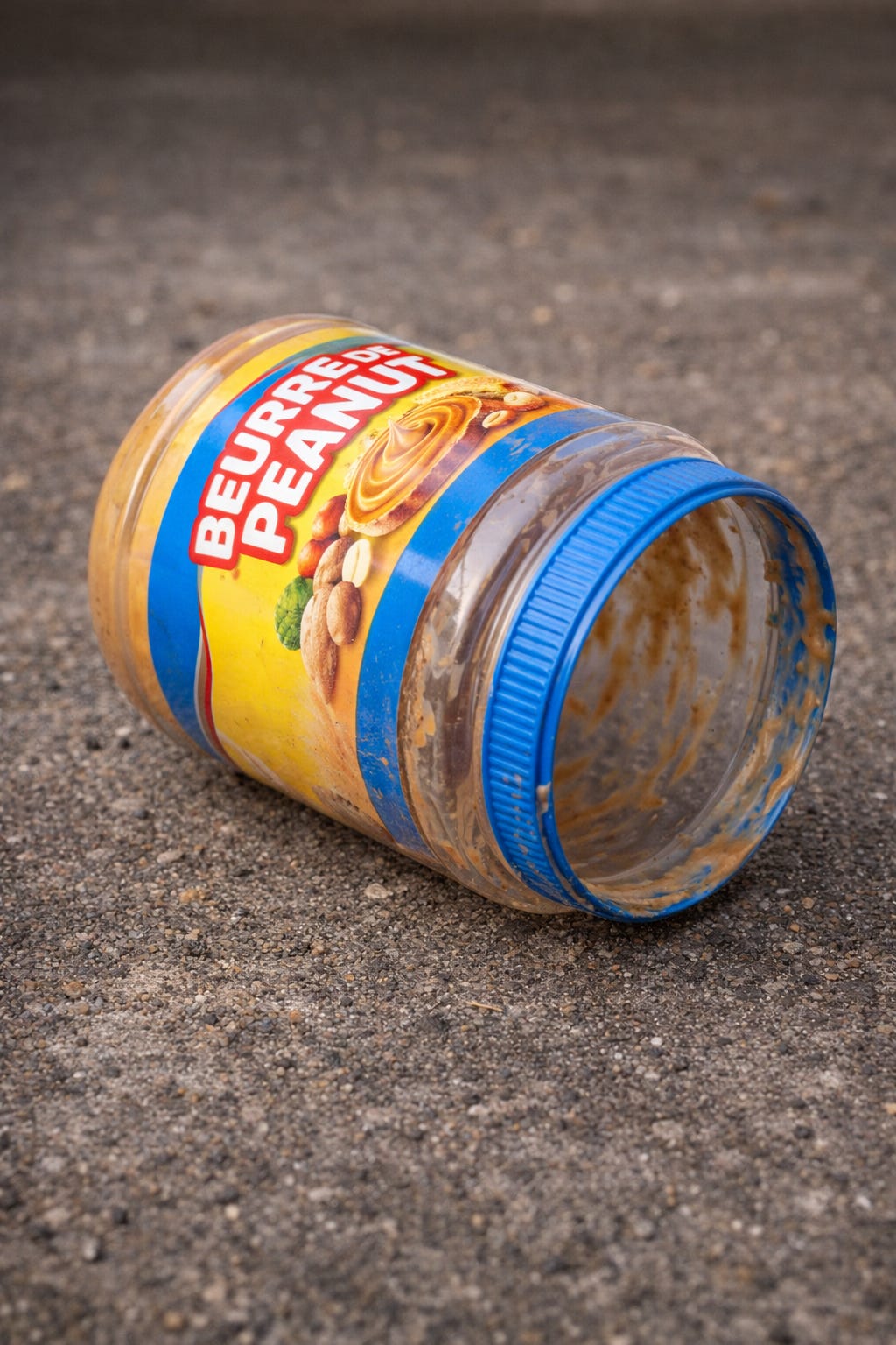 Par terre, au pied du lit, le pot de beurre de peanut. Vide. Propre. Léché net.
